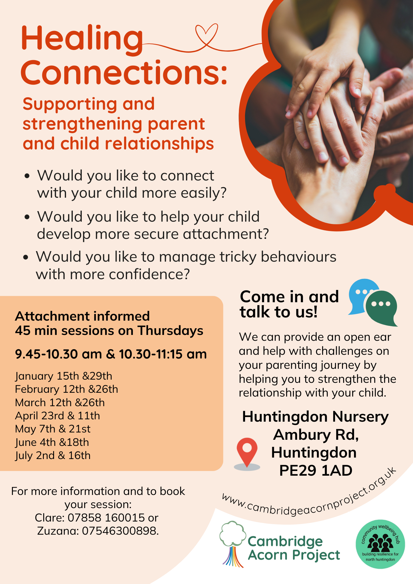 At some hubs we have additional programmes for parents such as Circle of Security and Healing Connections (in Huntingdon).
