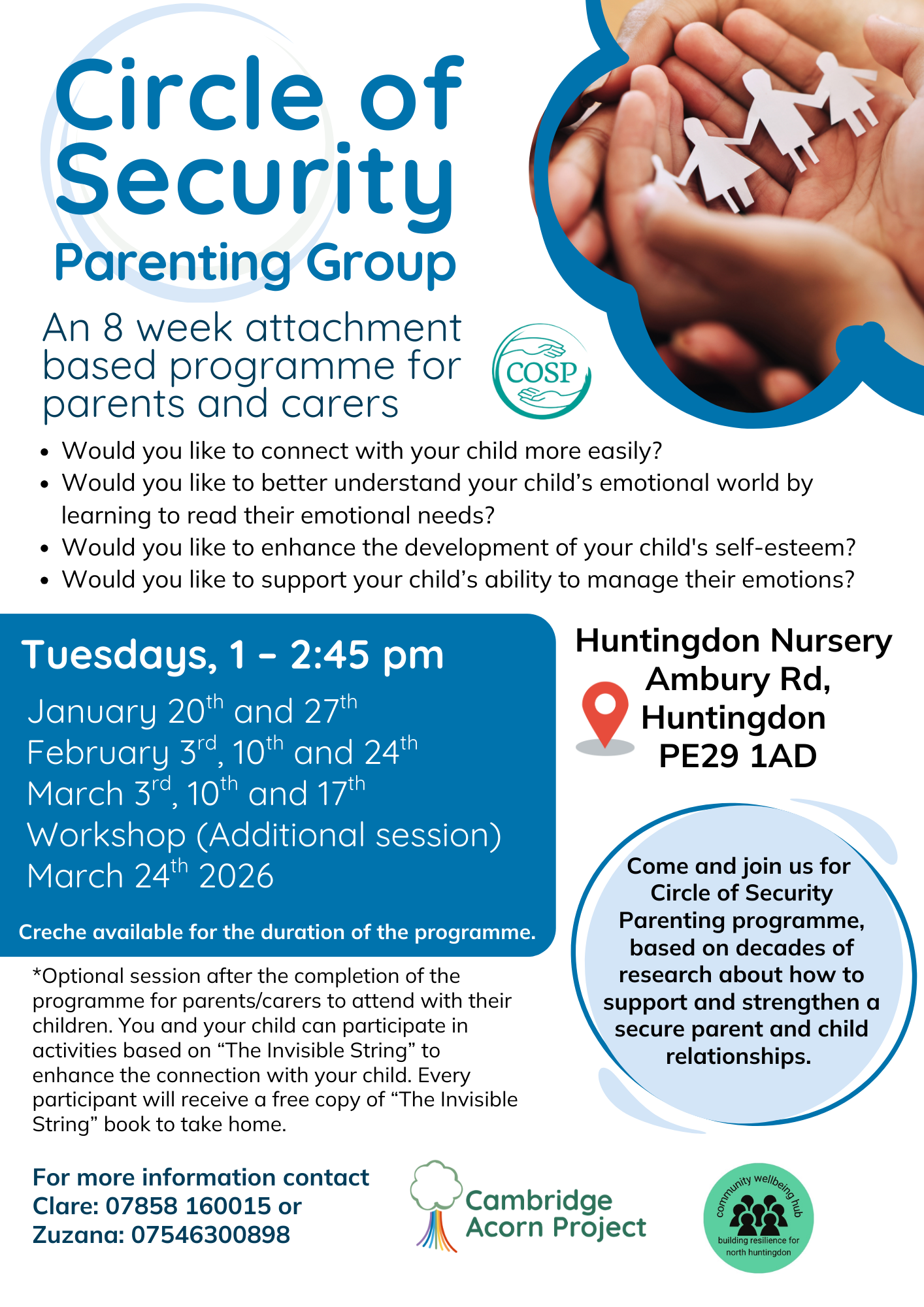 Contact: Zuzana Day at zuzana.day@cambridgeacornproject.org.uk